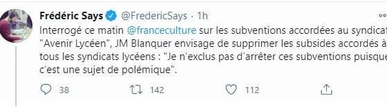 #Contrefeu Loin de tirer les conséquences de ses propres turpitudes suite aux révélations #Avenirlycéen, @jmblanquer préfère remettre en cause la démocratie lycéenne et envisage donc de supprimer les subventions aux syndicats représentatifs @socialistesAN https://t.co/q0zey0v7qK — Sylvie Tolmont 🌹 (@SylvieTolmont) December 16, 2020 Sylvie Tolmont 🌹 – Députée de la #Sarthe @socialistesAN #circo7204 #CantonLeMans7 Conseillère municipale…