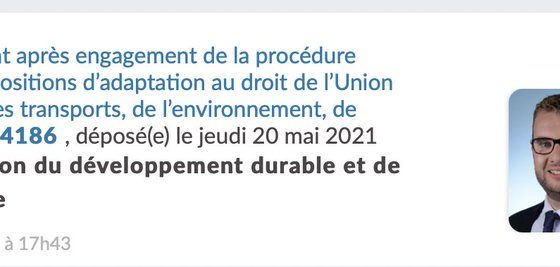 Très heureux d’avoir été désigné rapporteur du PJL portant sur l’adaptation du droit de l’UE dans les domaines du transport, environnement, économie et finances ! #DDAT Alors que la France s’apprête à prendre la présidence de l’UE, ce texte démontre toute notre ambition ! pic.twitter.com/cUbjI1RQba — Damien Pichereau (@DamienPichereau) June 3, 2021 Damien Pichereau –…