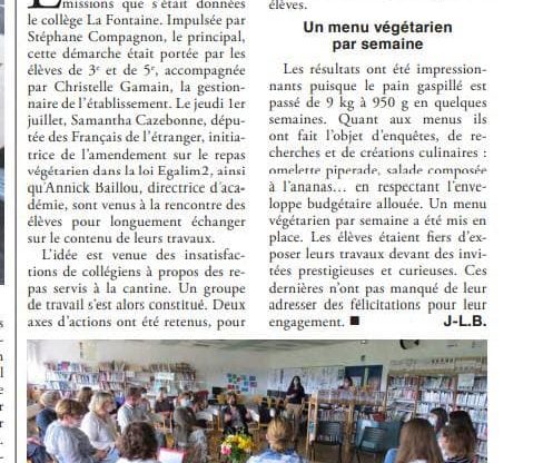 📰 🥗 Merci à l’hebdomadaire Haute Saintonge d’avoir relayé ma rencontre avec les élèves du collège de Montlieu-la-Garde autour de la question des menus végétariens 🌱 #DéveloppementDurable #MenusVégétariens #education pic.twitter.com/esVznCeHX7 — Samantha Cazebonne (@scazebonne) July 10, 2021 Samantha Cazebonne – Députée 5e circo FDE 🇪🇸🇵🇹🇦🇩🇲🇨🇫🇷 en mission sur la protection des espèces en danger, trafic…