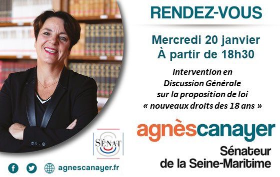 #DiscussionGenerale #ppl #nouveauxdroitsdes18ans pic.twitter.com/rAjayf3290 — Agnès Canayer (@ACanayer) January 19, 2021 Agnès Canayer – Sénateur de la @seinemaritime | Conseiller Communautaire @LeHavreAgglo | Conseiller muni @LH_LeHavre | Pdt de la Mission Locale LH @mllehavre |