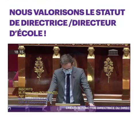 #Éducation | Nous votons définitivement la loi créant la fonction de directrice/directeur d’école. Une loi essentielle afin de valoriser davantage leur statut et leurs missions. Chaque jour, ils assurent l’avenir de nos enfants et œuvrent pour l’égalité des chances.@jmblanquer pic.twitter.com/N6IRlyvm5v — PierreYves Bournazel (@pybournazel) December 13, 2021 PierreYves Bournazel – Député de #Paris 18e circo,…