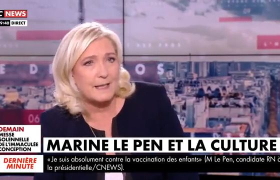 📹 A l'exception des enfants ayant des comorbidités, je suis absolument contre la vaccination des enfants, qui n'ont quasiment aucun risque d'attraper une forme grave du COVID. #HDPros pic.twitter.com/svCz5OjnPw — Marine Le Pen (@MLP_officiel) December 7, 2021 Marine Le Pen – Candidate à l’élection présidentielle 2022 | Député du Pas-de-Calais | #MLaFrance