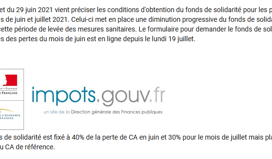 Pour les entreprises des secteurs de la #Restauration , du #Tourisme , de l'#événementiel, du #sport et de la #culture, le gouvernement a décidé de maintenir le fonds de solidarité jusqu'à la fin de l'été. Le formulaire est disponible dès aujourd'hui sur https://t.co/9ri4IKMGKj. pic.twitter.com/h95wjELo0x — GIRARDIN Eric (@GirardinEric) July 19, 2021 GIRARDIN Eric – Député…