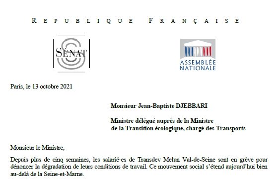 🚌Avec plusieurs parlementaires franciliens j'ai interpellé @Djebbari_JB ministre des #transports, @vpecresse présidente @IDFmobilites et au PDG de @transdevFR pour les enjoindre à répondre enfin aux attentes des salariés et usagers👉 https://t.co/UWbXS59nO9 #ServicesPublics pic.twitter.com/6B0olr1099 — MN Lienemann (@mnlienemann) October 14, 2021 MN Lienemann – Sénatrice GRS de Paris, ancienne ministre, @gauche_RS #GaucheRépublicaineEtSocialiste