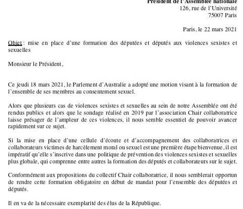 La prévention contre les violences #sexistes et sexuelles doit être une priorité. À l’instar du Parlement d’Australie, nous demandons à @RichardFerrand de rendre obligatoire, pour tous les deputé-e-s, une formation pour lutter contre ce type de violence. Notre courrier ⤵️ pic.twitter.com/dRwGmcsdm6 — Émilie Cariou (@EmilieCariou) March 22, 2021 Émilie Cariou – Co-Présidente des Nouveaux Démocrates…