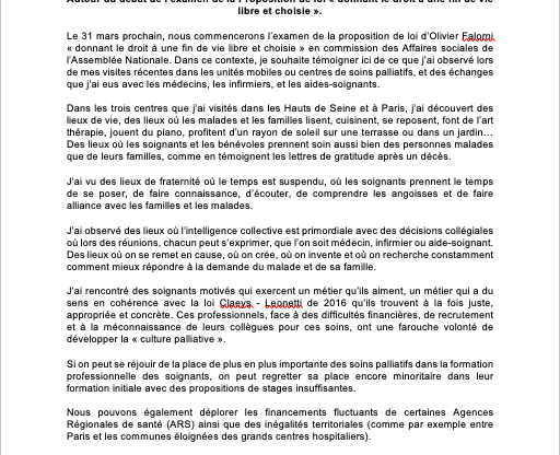 Le 31 mars prochain, nous commencerons l’examen de la #PPL d’Olivier Falorni « donnant le droit à une fin de vie libre et choisie » en @AN_AfSoc. Voici mon communiqué de presse concernant les #soinspalliatifs :@asso_SFAP pic.twitter.com/gDnVXxbikf — Bénédicte Pételle (@DeputeeBPetelle) March 29, 2021 Bénédicte Pételle – Députée @LaREM_AN de la 2ème circonscription des Hauts-de-Seine…