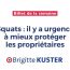 🖋 Je vous invite à lire mon billet de la semaine : « #Squats : il y a urgence à mieux protéger les propriétaires » 👉🏻 https://t.co/4Y0h2CGgyx pic.twitter.com/s7OHLzIoJy — Brigitte KUSTER (@brigitte_kuster) September 18, 2020 Brigitte KUSTER – 🔸Députée de Paris. #Ternes #Monceau #Dauphine #Chaillot 🔸Ancien maire du 17 ème. 🔸Conseillère de Paris.