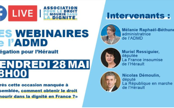 Je participe à un webinaire sur la fin de vie, organisé par l' @ADMDFRANCE Rendez-vous vendredi 28 mai à 18h.https://t.co/PK24YU2uzm#FinDeVie#webinaire pic.twitter.com/yTNBQ1Piad — Muriel Ressiguier (@MRessiguier) May 26, 2021 Muriel Ressiguier –